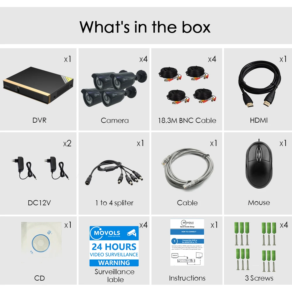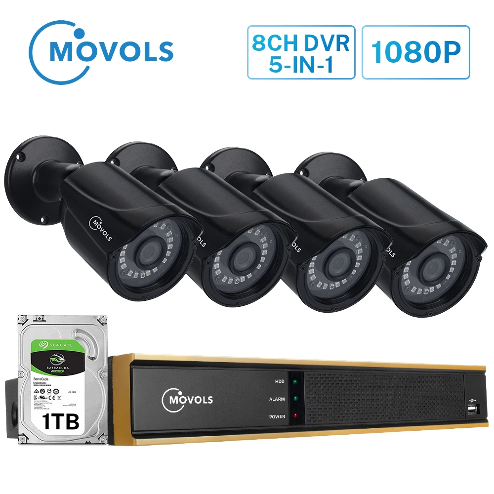 Movols 8CH CCTV camera System 4PCS 1080p Outdoor Weatherproof Security Camera DVR Kit Day/Night Hom